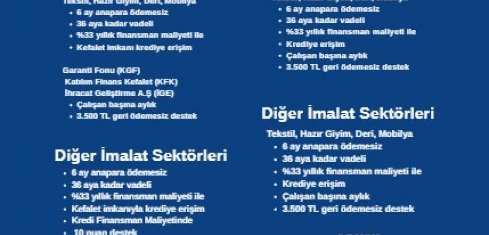 - Finansman Desteği (diğer imalat sektörleri): 10 puan geri ödemesiz finansman desteği